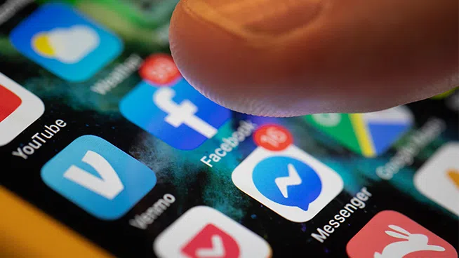 FILE – This Aug. 11, 2019, file photo an iPhone displays the apps for Facebook and Messenger in New Orleans. When U.S. law enforcement officials are fishing for information, they increasingly know where to go — in the vast digital ponds of personal data that Big Tech companies have created in their devices and online services that have hooked billions of people around the world. (AP Photo/Jenny Kane, File)