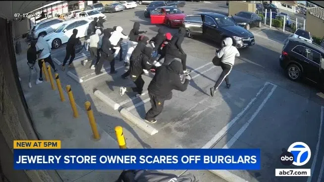 YouTube @ ABC7 An Anaheim jewelry store is relieved after scaring off would-be burglars with a single gunshot. The owner of Al-Amira Jewelry says he was locking up last Thursday night when a gang of n...
